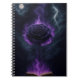 A bold and gothic notebook design featuring a dark rose on fire, growing from a magical book. Purple flames and a ghostly figure in the smoke add a mysterious vibe. Great for notes, drawings, or anyone who loves goth and fantasy style.