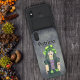 This iPhone slider case lets you carry your items inside your phone. It has a Goth girl wearing a green hat with face and arm tattoos on a dark grey textured look with glowing yellow background. Customise your name or text with the template.