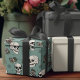 Hand-drawn in black ink, this wrapping paper features a beatufiul pattern of skulls, roses and spiderwebs in cream and blush tones, all against an elegant eucalyptus green background.