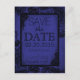 Black lace over royal blue grunge background Gothic save the date postcard.