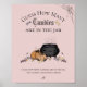 This Halloween Baby Shower game is called "Guess How Many Candies". The design: Hand-drawn in black ink, this card features a bubbling cauldron, candies, candy corn, spiderwebs and a pumpkin, all against an elegant blush pink background.