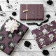 Custom gothic, dark, and elegant wrapping paper sheets featuring hand-drawn details in vintage maroon purple and black tones.