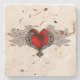 Goth, jewel-like red heart, slightly crushed and a little cracked but not broken with Angel Wings