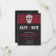 Goth Skull Swirl & Lace Wedding Save the dates in red & black. Perfect for any event with a day of the dead (dia de los muertos), calavera, or cool theme. Coordinating additional cards available in the shop but if not found or have any edits, please email articulosdepapel@gmail.com or through the "Ask the Designer" link. Most edits done within 24 hours.