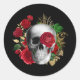 Goth Skull with Red Flowers & Gold Leaves Classic Round Sticker