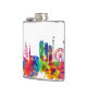 Well made flask, a little better than I had expected. Flask came in clear plastic box which gave it a nice presentation when I took it out of the zazzle packaging. Image is not printed on flask but on sticker. Don't know how this will hold up I haven't used it yet. This would make a Great gift! I plan to purchase more for friends! Cheers. I thought a little brighter than computer. Very crisp, writing wasn't