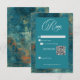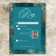 Gothic Antique Teal Gold Damask QR Code Wedding RSVP Card