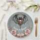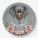 Gothic Bat Wedding Paper Plates. © Dark Heart Desires. These paper plates have a gothic bat design with pink roses and a skull. The names on the plate are fully customisable to names that are relevant to your event.