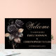 Crafted from high-quality black acrylic, this wedding sign exudes sophistication and luxury. The deep black backdrop creates a bold contrast with the shimmering gold roses, making the text pop and ensuring that your welcome message is both readable and visually appealing. Whether your wedding theme leans towards the eerie elegance of a haunted mansion or the dark romance of a Gothic cathedral, this sign seamlessly integrates with your decor, enhancing the overall atmosphere.