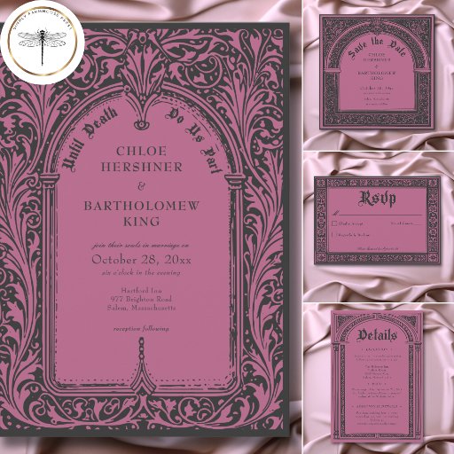 Gothic Black Burgundy Medieval Until Death Wedding RSVP Card