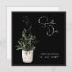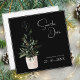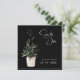 Gothic Black Christmas Tree Wedding Save the Date Card. A modern gothic save the date featuring a moody black background and a minimalist potted Christmas tree. Ideal for festive winter weddings with dark romantic style. A perfect way to announce your date with a bold seasonal aesthetic.