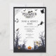 This eerie and enchanting invitation features a black crow silhouetted against a foggy sky, with flying bats swirling around it. The words "halloween party" are written in a gothic font, adding to the invitation's ominous feel. It's the perfect way to invite your friends to a spine-chilling Halloween party where they can come dressed up in their costumes and have a spooktacular time.