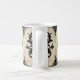 A black damask pattern on a grunge, aged parchment background, makes the perfect mug for a Goth. Victorian in appearance, graceful, elegant, and dark.
