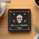 Gothic Black Dia de los Muertos Sugar Skull Flower Square Paper Coaster