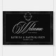Step into a world of dark elegance with our captivating gothic wedding welcome sign. Set against a stunning black-on-black damask satin vintage floral wallpaper, this invitation exudes an air of mystery and timeless charm. At the top, a vintage gray and black cartouche cradles the couple's first initials, adding a touch of regal splendor to the design. The text box background in rich charcoal black adds a touch of color. With an aged look that exudes sophistication, this invitation is a perfect blend of old-world allure and contemporary appeal. Embrace the allure of the past and invite your guests to witness a love that transcends time with this captivating gothic wedding invitation. Created by Simply Farmhouse Press.