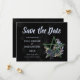 Send an unforgettable Save the Date with this Custom Black Gothic Wiccan Floral Handfasting template design featuring a hunter green pentacle with black roses and gothic floral elements over a black watercolor background.