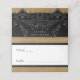 Transport your guests to a world of dark, enchanting elegance with our vintage gothic wedding place cards. The deep, aged yellow gold background sets the stage for a striking contrast, as a bold white text emerges from a intricate black and gray outline. On the back of this design, a three-dimensional gothic filigree border with two black ravens captures the essence of mystery and romance. Unleash the magic and set the tone for an unforgettable wedding day. Created by Simply Farmhouse Press.