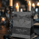 Transport your guests to a world of dark, enchanting elegance with our vintage gothic wedding favor boxes. The deep, aged charcoal black background sets the stage for a striking contrast, as bold white text emerges from intricate black text boxes. At the pinnacle of this invitation, a three-dimensional gothic filigree heart captures the essence of mystery and romance. Unleash the magic and set the tone for an unforgettable wedding day. Created by Simply Farmhouse Press.
