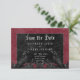 Transport your guests to a world of dark, enchanting elegance with our vintage gothic wedding save the date card. The deep, aged burgundy wine background sets the stage for a striking contrast, as bold white text emerges from intricate black text boxes. Three-dimensional gothic elements adorn the design, capturing the essence of mystery and romance. Unleash the magic and set the tone for an unforgettable wedding day. Created by Simply Farmhouse Press.