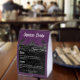 Transport your guests to a world of dark, enchanting elegance with our vintage gothic wedding signature drinks bar pedestal sign. The deep, aged purple background sets the stage for a striking contrast, as bold white text emerges from intricate black text boxes. Three-dimensional gothic elements adorn the design, capturing the essence of mystery and romance. Unleash the magic and set the tone for an unforgettable wedding day. Created by Simply Farmhouse Press.