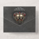 AVAILABLE WITH OR WITHOUT A QR CODE TO SCAN IN THE RSVP AREA OR WITH OR WITHOUT DINNER OPTIONS. Embrace the mysterious allure of your special day with this vintage inspired design. A distressed charcoal black background sets the stage for a celebration that transcends time. The antique-inspired white text whispers promises of everlasting devotion, while a Gothic-style black, gold, and red filigree heart reigns supreme at the top, cradling two smiling gold skulls in mesmerizing three-dimensional relief. This invitation is more than a mere announcement; it's a captivating masterpiece that reflects the unique union of two souls. Invite your guests to share in the enchantment of your love story with this extraordinary blend of vintage charm and Gothic romance. Unveil the magic, and let your love story unfold in the shadows of elegance and mystery. Created by Simply Farmhouse Press.
