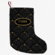 Beautiful Goth Christmas stocking featuring vintage black and gold damask pattern with rosebuds and customizable center text.