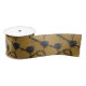 Goth style satin ribbon features AI generated speedpaint style pattern of black roses and vines on a golden brown background.