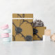 Goth style wrapping paper features AI generated speedpaint style pattern of black roses and vines on a golden brown background.