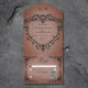 Celebrate your love in the grandeur of Gothic romance with our captivating wedding invitation. Embrace the dark allure and timeless elegance with our black three-dimensional filigree heart frame, enveloping bold black text against a vintage Victorian rust background. This invitation exudes a mysterious charm, perfect for couples seeking to infuse their wedding day with an air of dramatic sophistication. The intricate details of the filigree heart frame add depth and texture, creating a mesmerizing focal point that captures the essence of your unique love story. As a final touch of personalization, the back of the invitation features the same enchanting filigree heart frame adorned with the first initials of the couple, adding a subtle yet meaningful touch to this Gothic masterpiece. Let your wedding invitation set the stage for a celebration that is as unforgettable as it is romantic. Choose our Gothic filigree heart wedding invitation and embark on a journey to a day filled with passion, mystery, and everlasting love. Created by Simply Farmhouse Press.