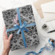 Gothic Black Skull Grunge Damask Pattern Wrapping Paper