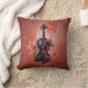 Gothic black violin with red roses throw pillow
