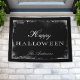 This lovely Halloween doormat features a black distressed background, white vintage inspired typography, and your own name. It makes a spooky yet tasteful addition to your Halloween decorations.