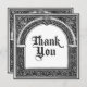 Embrace timeless romance with our Gothic Medieval wedding thank you card, where love and darkness entwine in elegant harmony. A striking black and white arched design frames your announcement with intricate leaf filigree reminiscent of ancient cathedrals and hand-inked manuscripts. At the top, the words, "thank you" crown the invitation in haunting beauty, guiding the eye to vintage-style fonts that evoke an old-world charm. Perfect for couples who dare to celebrate love with depth, drama, and enduring devotion. Created by Simply Farmhouse Press.