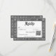 Embrace timeless romance with our Gothic Medieval wedding response card with a QR code, where love and darkness entwine in elegant harmony. A striking black and white design frames your announcement with intricate medieval floral filigree reminiscent of ancient cathedrals and hand-inked manuscripts. At the top, a vintage-style font that evoke an old-world charm sets the vintage tone. Perfect for couples who dare to celebrate love with depth, drama, and enduring devotion. Created by Simply Farmhouse Press.