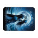 This romantic gothic wedding save the date announcement magnet features a blue skeleton couple dressed in wedding attire standing in front of the moon and ocean beach with your names and wedding date to personalize . Image generated with AI.