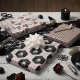Custom gothic, dark, and elegant wrapping paper sheets featuring hand-drawn details in black and blush pink tones.