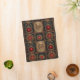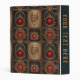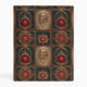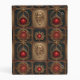 Red jewels in gold settings on a black background, with a carving of a skull in gold, creates a beautiful mini binder reminiscent of an old, Gothic book cover.