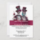 Gothic bride groom skeleton burgundy rose wedding invitation