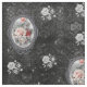 Sold by the yard or in fat quarters and swatch, this Goth inspired design fabric features Gothic Cameo Roses in a Victorian Style on a gray damask and jet black background. Perfect for home decor, holidays or DIY projects. All elements are printed on our high quality products, they do not include any real gold, jewels, embossing, or other textile elements. All designs are copyright Tabitha Jones all rights reserved.