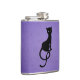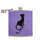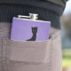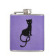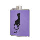 Gothic cat lover flask with a beautiful illustration of a gracious evil black cat with glowing eyes on purple textured background.