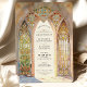 Plain white envelopes are included with paper invitations and will come to fit the invitation size you select. If you don’t need the envelopes, you may choose to not receive them by selecting the dropdown below "Envelopes" and choosing "None." If you’d like to have a design on your envelopes, you can browse all of these available envelopes to find the design that complements your Gothic Cathedral Stained Glass Wedding Invitation.