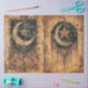 Moon and Stars, Gothic Celestial images on old paper background. Fold in half or cut for crafting: junk journal pages, decorative pages, covers, tear sheets, and backgrounds for cards, pockets, envelopes, tags, and more. Perfect for scrapbooking and art projects and decoupage.