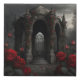 Gothic Cemetery Gazebo with Red Roses at Night Faux Canvas Print