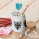 A pretty scroll work cross in a romantic heart taken from my photo of an old Victorian crypt door in a cemetery. This makes for an elegant design in black on a small white jar.