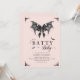 Bring bold elegance to your celebration with this Gothic Chic Baby Shower Invitation, designed for the stylishly spooky mama-to-be. Featuring a striking black bow with bat wings, ornate vintage flourishes, and delicate bats fluttering across a soft blush pink background, this invitation is the perfect blend of gothic glamour and modern charm. Whether you're planning a Halloween-themed shower or simply love a darker aesthetic, this unique design sets the tone for an unforgettable event. Fully customizable to match your hauntingly beautiful celebration!