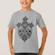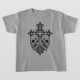 Gothic style cross with two fanged skulls is a wicked skull design that looks great on apparel and gifts.
