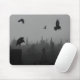 Gothic crows fly above the old graveyard on a spooky mouse pad.
