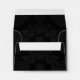 An A2 envelope in a dark grey and black damask patter with a paler grey swirl border to emcompass a zazzle 3 3/4" x 2" label.