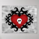 Adorable black damask motif drawn by me with a red heart on it and a punk skull. So cute. Shown here on a grungy gray poster.
