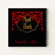 A dark gothic spell book, or grimoire, with delicate blood red foliage.